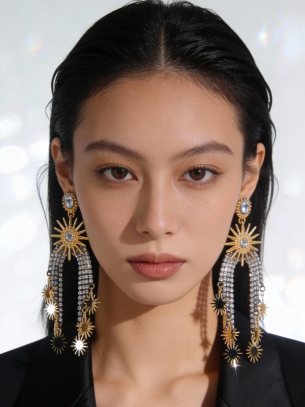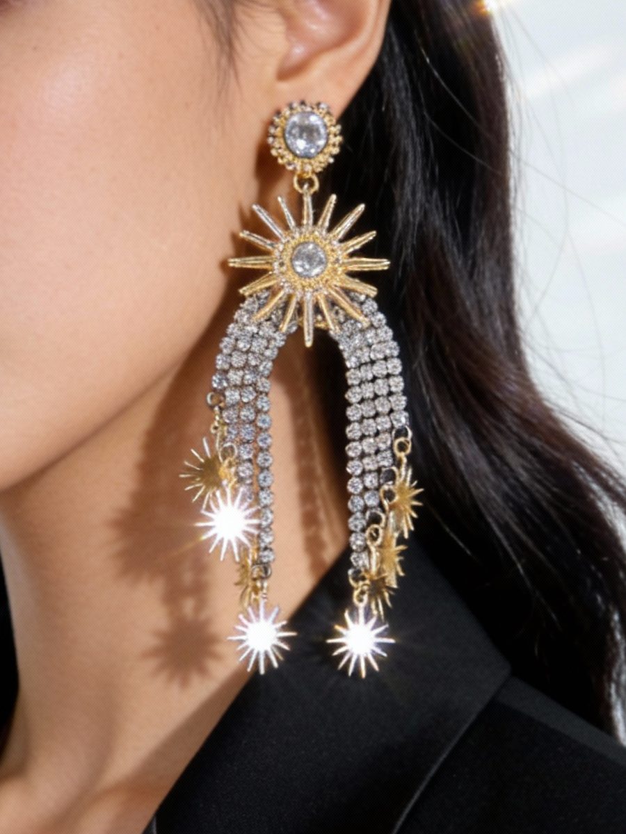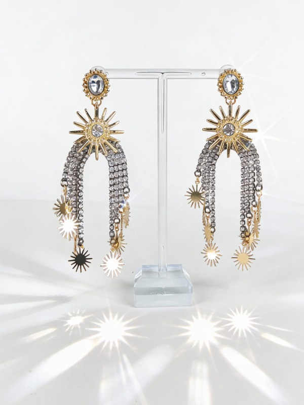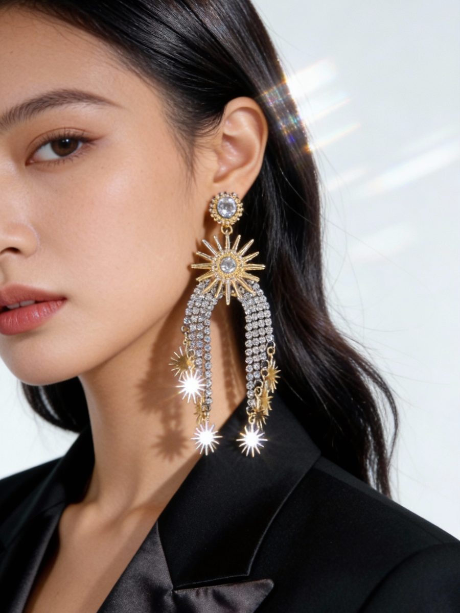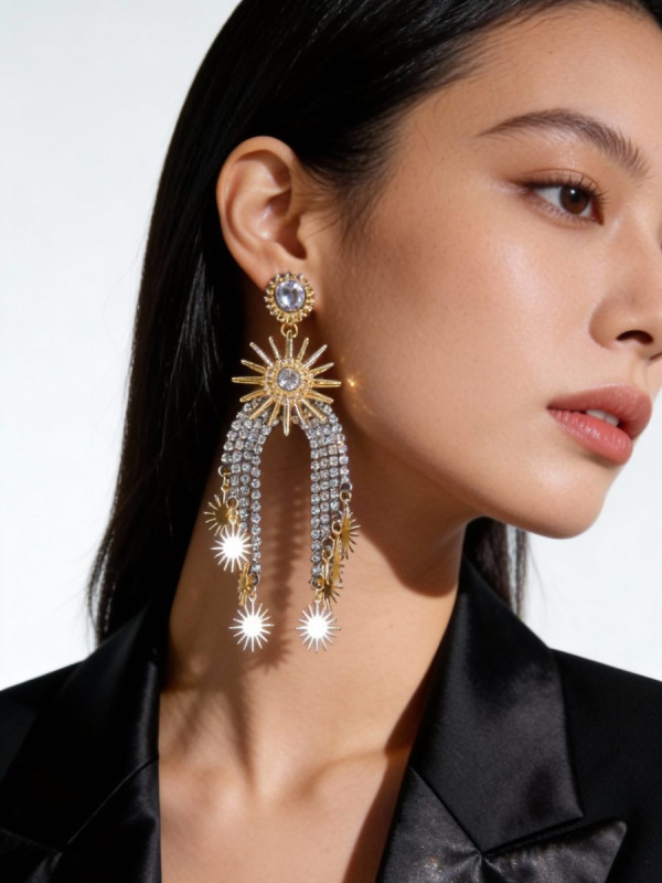 Arch shape rhinestone earrings with gold, silver, and black tones perfect for your fancy events.